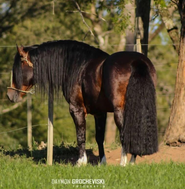 Apache , chileno puro , filho de Muchacho x Ventura Madriguera que por sua vez é filha do TETRA Grande Campeão da expointer , feito até hoje inatingido .